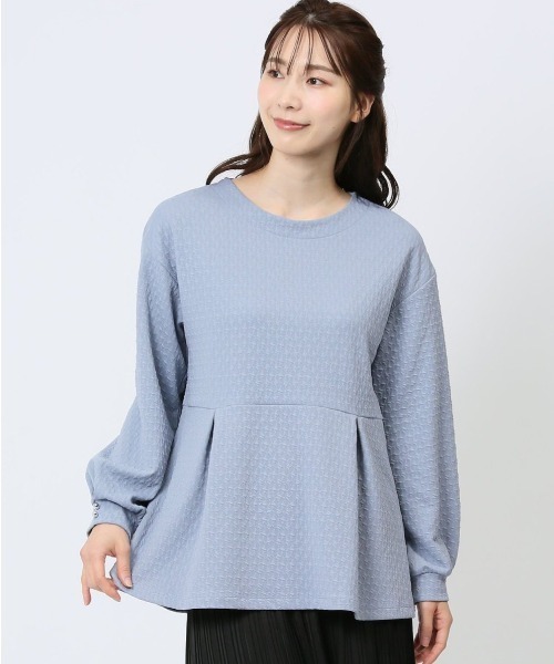 ■素材特徴 ポリエステルにポリウレタンを混紡したカットソー素材です。プリントにはない立体感と奥行きのある表情が特徴のふくれジャガードです。肌に触れる内側はふんわり優しい肌触りです。 ■機能 【ストレッチ】伸縮性に優れ動きやすく、長時間の着用もストレスフリー。 【マシンウォッシャブル】洗濯機で洗えます。(要ネット・標準水流) ■デザイン 一枚で着映えする、華やかなクルーネックの長袖プルオーバーです。裾広がりになったぺプラムデザイン、凹凸感のあるふくれジャガード、袖口の丸ボタンがアクセントになっています。 ■シルエット 幅広い年代の方に着ていただけるベーシックなシルエットです。立体的なペプラムシルエットが腰回りをさり気なくカバーして、スタイルにメリハリ感を与えてくれます。 ■コーディネート 綺麗目からカジュアルまでオンオフ兼用で着回しが可能。デニムと合わせてラフに、タイトスカートと合わせて甘めに、モノトーンのパンツ合わせでスマートにも決まります。ボトムを選ばない着丈なので、1枚持っておくと便利です。 フィット感:標準 シーズン:秋冬 展開カラー:アイボリー・黒(ブラック)・青(ブルー) *アテンションタグ・洗濯ネームを御確認の上、着用又は取り扱い下さい。 *光の当たる場所や高温多湿になる場所での保管は避けて下さい。 *使用の有無に関わらず、経年劣化は進行いたしますのでご了承下さい。 *閲覧デバイス・環境により質感・色味に誤差が生じる場合がございます。 * ZOZOTOWN お買い物ガイド 商品のお気に入り登録 ♡をクリックしましょう!完売カラーの再入荷通知や、ラスト1点の通知、セールの通知をお知らせします。 ブランドのお気に入り登録 新商品や再入荷など、いち早くお得な情報を受け取ることができます。 最短で翌日お届け 商品をカートに入れた後、注文内容の確認ページで「即日配送」を選択していただければ、最短でご注文した翌日にお届け致します。 (ZOZOTOWNお買いものガイドをご参照ください)