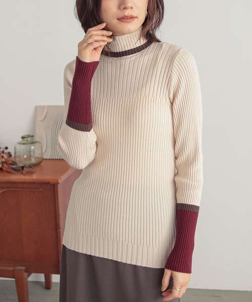 \着こなしのアクセントに♪/デザインが目を惹く『配色リブニット』■デザイン袖部分&襟部分の配色デザインが目を惹くリブニット。身体にフィットし過ぎない、程良いサイズ感のアイテムです。リブの編み柄を切り替えて、シンプルながらもさり気ない変化を付けたこだわりの一枚。■コーディネートシンプルなボトムスと合わせると配色デザインがコーデの差し色に。ワンピースやサロペットなどとレイヤードして袖&襟部分を覗かせるスタイリングもおすすめです。■素材チクチクしない、もちもちとした気持ちの良い肌触りのリブ編みニット。伸縮性があり快適な着心地を叶えます。ニット製品につきまして。ニット素材の持つ特性として編み上げる行程やプレス仕上げによって多少サイズや風合いの個体差が生じる場合がございます。着用した時と実寸の長さが変わる可能性がございます。また、着用の際ピリングが避けられず、完全に防止することはできません。毛玉取り器等で丁寧に取り除いてください。※染色の特性により、伸縮性・サイズ感に個体差があります。以上、ご了承のうえご購入いただきますようお願いいたします。