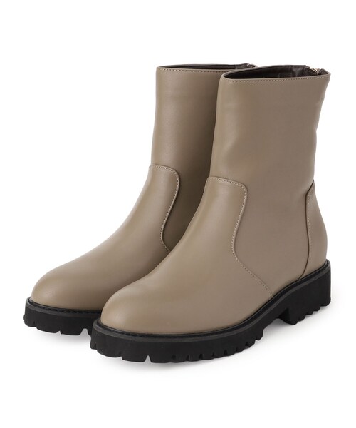 軽量なソールを使用したトラックソールブーツ。 【デザイン】 カジュアルなトラックソールに、ジョッキー風のアッパーデザインを合わせました。 バックファスナーで着脱も簡単です。 インソールもクッション性があり足あたりも優しく、トラックソールながら軽量に仕上げているのでデイリーに使いやすいデザイン。 履くだけで足元にボリュームがでるので、スタイリングのバランスを取りやすいブーツです。 【人間工学とは】 人間が可能な限り自然な動きや状態で使えるように物や環境を設計し、実際のデザインに活かす学問の一つ。 groveでは、人間工学に基づき商品開発をしているアイテムをご用意しています。 Mサイズ:23.0cm~23.5cm相当 Lサイズ:24.0cm~24.5cm相当 ※照明の関係により、実際よりも色味が違って見える場合があります。また、パソコン・スマートフォンなどの環境により、若干製品と画像のカラーが異なる場合もございます。 店舗へのお問い合わせ商品番号:769-19008 ●製品寸法: M(23.5cm~24.0cm):ヒール高3.5cm 幅7.4cm ブーツ筒周り27cm ブーツ総丈20cm L(24.0cm~24.5cm):ヒール高3.5cm 幅7.7cm ブーツ筒周り28cm ブーツ総丈20.5cm 備考:重量:サンプルサイズL(24.0cm~24.5cm)片足約293g
