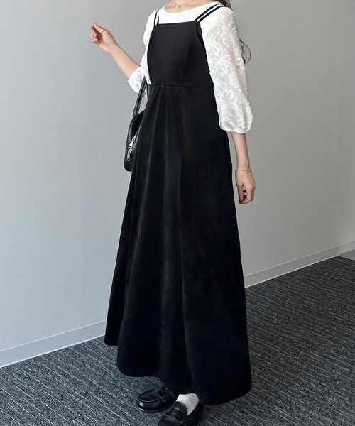 【JUNOAH / ジュノア】 大人っぽさあふれる・ベロアフレアキャミワンピ。 ■detail秋冬コーデを彩ってくれるベロアキャミワンピ。 裾に向かってふんわりと落ちるフレアシルエットで女性らしい雰囲気に。 また、バックリボンでウエストをきゅっとすることで 後ろ姿も可愛らしく、細見え効果も叶えてくれます。 着るだけで格上げコーデが完成する上品ワンピになります♡ ※左脇ファスナー付き ■fabric シーズンムード高まる上品な艶感のベロア素材。………………… 透け感:なし 厚さ:普通 伸縮性:なし 裏地:あり シワ:ややなりやすい 推奨シーズン:9月~10月、3月~4月 ※アウターやインナーによって長いシーズン着用いただけます。 ※関東の平均気温を目安に推奨シーズンを記載しております。 ………………… ※詳しいお手入れ方法は商品タグをご参照ください。 【※必ずご確認の上、ご検討ください※】 ※通販の特性上、到着時には畳みシワが必ずございますのでご了承ください。 ※当ブランドではデザイナーの感性を大切にし、デザイン性を重視した商品を提案しております。 画一的な商品ではなく、最新の生地や仕様で個性に焦点を合わせて展開いたしますのでお気軽にお試しください。 ※返品・交換規定は当サイトのヘルプをご参照ください。 ★お買いものをよりお楽しみいただく為に!★ ▼商品のお気に入り登録 お気に入りアイテムの完売カラーの再入荷通知や、ラスト1点の通知、 セールの通知も受け取ることができます。 ▼ブランドのお気に入り登録 新商品や再入荷など、クーポン配布などのお得な情報を受け取ることができます。 ※商品画像は撮影時の光や角度により、実物の色味と異なって見える場合がございます。 ※撮影はサンプル品を使用しており、表示のサイズ感も実物とは若干異なる場合もございますので、 予めご了承ください。 ※生産時期により色・素材・サイズ感など多少異なる場合がございます。予めご了承ください。
