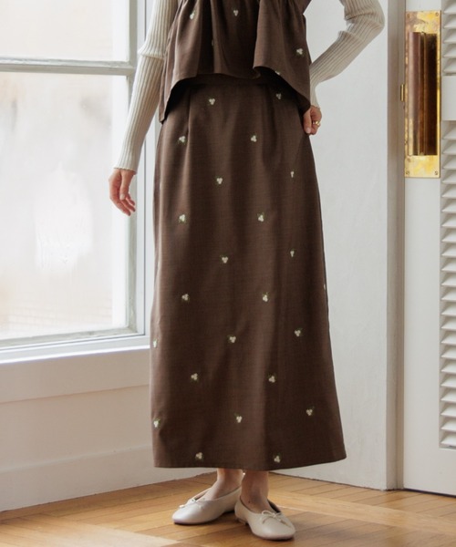 ■デザインオリジナルの刺繍が施された特別感のあるスカート♡タイトすぎないflowerの定番シルエットで、体形カバーとスタイルアップを叶えてくれる一枚です!後ろウエストはゴム仕様でお腹周りをすっきり見せつつも着脱が楽ちん♪ほどよく厚みがある為ボディラインを拾いにくいのも嬉しいポイントです◎落ち感のあるシワになりにくい生地でデイリー使いにぴったり♡デートやイベントなど特別なお出かけには同生地のcalm embroidery bustierと合わせたセットアップコーデがおすすめです!※商品の仕様上、刺繍の位置に個体差がございます。予めご了承ください。sparkle bubble topのようなシンプルなカットソーやブラウスと相性抜群♪■flower/フラワー「love&joy」をコンセプトに、商品に愛を込め、お客様に楽しんでいただけるような、ナチュラルでガーリーなアイテムを提案していきます。【お買い物を上手にお楽しみいただくためのPOINT2つ】◎ 購入ボタン横の ♡ (ハートマーク)をクリック! 完売カラーの再入荷通知、残り1点の通知、セールの通知を受け取れます。 (クリックまたはタップで商品のお気に入り登録♪)◎ ショップのトップページにある ♡ (ハートマーク)「お気に入りショップに追加」をクリック! 新商品や再入荷等、いち早くブランドのお得な情報を受け取れます。 (ブランドのお気に入り登録♪)