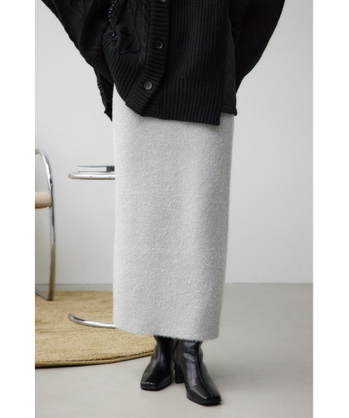 ■商品(デザイン)ポイント トレンドのラメニットスカート。 ■商品ディティール 華やかなシャギーニットをふんだんに使用し、ボリュームたっぷりに仕上げたナロースカート。 程よくボディラインにフィットする女性らしいデザインです。 ファスナーなしのウエスト全周ゴム仕様は着脱も簡単で、イージーな履き心地です。 ■スタイリング カジュアルなオーバーサイズのトップスとのコーディネートがおすすめです。 ■素 材:ラメ糸の入ったシャギー糸で肌触りの柔らかい素材です。適度な厚さもありながら軽い仕上がりのニットです。 ■透け感:なし ■光沢感:あり ■伸縮性:あり ■裏 地:なし [お気に入り登録のおすすめ] ■商品のお気に入り登録 お気に入りアイテムの再入荷・在庫1点などの通知を受け取ることができます。 ■ブランドのお気に入り登録 新作アイテムの入荷や人気アイテムの再入荷、おすすめトピックスなど、いち早くブランドの情報を受け取ることができます。 [注意事項] ※弊社管理上のカラーを表記しており、タグのカラー表記と異なる記載となっている場合がございます。 ※商品画像の色味は、屋外や屋内の光の照射や角度により実物と色味が異なる場合がございます。 ※着用、お取り扱いの際は、アテンションタグをご確認ください。 AUTUMN & WINTER ( 秋服 / 冬服 ) ※こちらの商品はAZUL BY MOUSSY独自の採寸方法となっています。本サイトのサイズガイドと採寸方法が異なる場合がありますのでご了承ください。