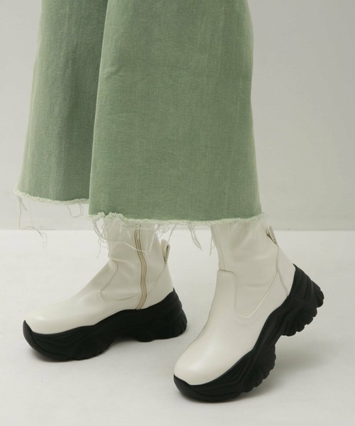 脚に沿うように伸縮性のある生地を使用し、履き心地のよさにこだわりをもったストレッチブーツ。 ソールの高さが6cmで足長効果を狙える秀逸なデザインをしております。 厚みのあるソールはスタイルアップ効果が期待できます。 そして見た目に反してソールが軽いのは嬉しいポイント。 全体的にボリューミーに見えますが、アッパーが細めに作られているため、 足回りがすっきりとしたシルエットに魅せられます。LLサイズもご用意しております。 シティからアウトドアまで汎用性が高く、 さまざまなシーンに活躍すること間違いなしな一足です。 サイズS(22~22.5cm) 足長:23cm 甲巾:7.6cm ヒールの高さ:6cm 筒丈:19cm 履き口:23.8cm 重さ(片足):215g サイズM(23~23.5cm) 足長:24cm 甲巾:7.8cm ヒールの高さ:6cm 筒丈:19.7cm 履き口:24.8cm 重さ(片足):220g サイズL(24.5~25cm) 足長:25cm 甲巾:8cm ヒールの高さ:6cm 筒丈:20.5cm 履き口:25.8cm 重さ(片足):225g サイズLL(25.0~25.5cm) 足長:26cm 甲巾:8.3cm ヒールの高さ:6cm 筒丈:21cm 履き口:26.5cm 重さ(片足):230g Bella Lume(ベッラ ルーメ) Bellaはイタリア語でかっこいい、美しいを意味します。 Lumeはイタリア語で光を意味します。 女性たちに常に自分らしく輝くための一足でありたい。 お出かけの前に前向きな気持ちになれるような出会いの場で 自信を与えてくれるような存在でありたい。 あなたの日々と共に時に寄り添い、時に背中を後押し、 光を照らし一緒に前を向いて歩こう。 まだ見ぬ景色を見つけるために。
