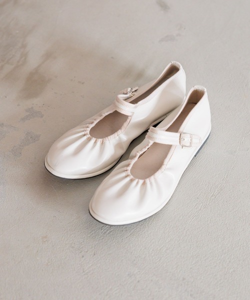 くしゅっとデザインがかわいいワンストラップシューズーーー【素材】甲材:合成皮革底材:合成底【デザイン】デザイン性はありながらベーシックカラーで合わせやすいパンプス。バックル裏のゴムの収縮でベルトを取らずに着用も楽々◎軽くて機能性もあり、オンオフ使えるデザインです。【機能】・消臭・抗菌防臭機能のあるテープをつま先裏地に使用・クッション性のあるインソールに使用しており柔らかい足当たり・甲材、裏材に柔らかい素材を使用しており優しい履き心地ーーー【スタイリング】カジュアルなデニムスタイルやロングワンピース、オケージョンにも〇コーディネートのテイストを選ばずにお使いいただけます。