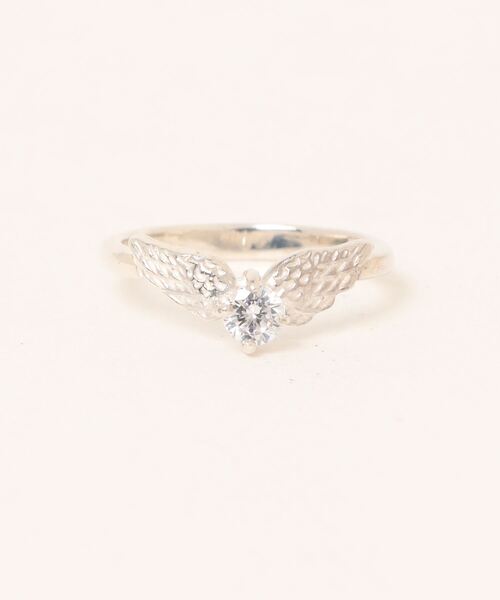 翼モチーフの女性らしいデザインのピンキーリング。付属品:ポーチ