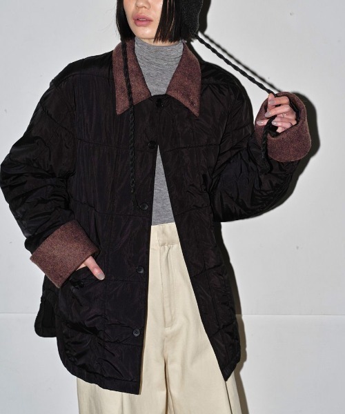 スクエア柄のキルティングステッチを施したジャケット。シルキー感がある生地を使用しています。 襟の裏や切り替え部分のステッチワーク、メランジウールの生地を使用した襟とカフスが魅力。襟はボタンを止めてスタンドカラーとしても着用可能。 中綿であたたかく軽いので、秋にはアウターとして、冬には上からコートを合わせてシャツジャケット感覚でもお使いいただけます。 TODAYFUL(トゥデイフル) -感性によって柔軟に変わりゆくもの -ずっと変わらない愛すべきもの それぞれを大事にし都会的な洗練さと肩のちからがぬけたラフさを程よくミックスしたスタイルを提案します。 日常に馴染みつついつもより少しセンス良くみえるそんな服づくりを意識しています。 ※商品の画像は、可能な限り実物に近いカラーにて掲載しておりますが、使用しているパソコンのモニター設定や、携帯電話のメーカー・機種により実際のカラーと異なって見える場合がございます。 ※予約商品などはサンプル商品で撮影しておりますので、実際の商品とは素材や加工、カラー・サイズ等、仕様が若干異なる場合もございます。予めご了承ください。