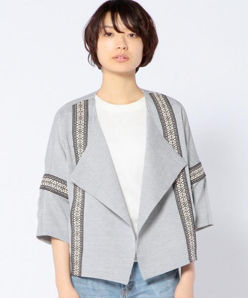 テープジャカードカーディガン☆ ジャカード模様のテープを施したカーディガン。 ゆとりのある身幅に短めの着丈でバランスの取れたデザイン。 印象的なシルエットながらも落ち着いた色合いのカーディガンは、 Tシャツに合わせるだけで大人っぽい着こなしに仕上がり、 大人なボヘミアンスタイルを楽しめます◎ ※着用、お取り扱いの際は商品についておりますアテンションタグ、洗濯ネームを必ずご確認ください。 店舗にお問い合わせの際は、全国のAnother Edition店舗まで 下記の品名/品番をお申し付け下さい。 品名:AEBC TAPE JQD CGN 品番:56156990882