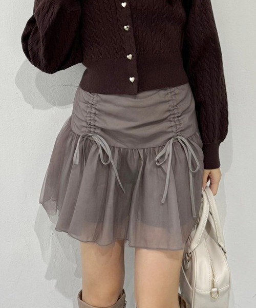 ~NICECLAUP 2024 early Winter Collection~ ドロストデザインで低めの切替などトレンドライクなデザインのミニスカート ウエスト部分のドロストとリボンがガーリーな印象を与えてくれます◎ 柔らかいチュール素材で動くたびに揺れて女性らしさもプラス。 中はパンツになっているので、ミニ丈でも安心して着ていただけます。 ■オススメスタイリング 甘めなテイストのトップスと合わせたガーリーコーデがオススメ。 厚底スニーカーやローファーを履くと韓国っぽい着こなしに◎ コンパクトなトップスと合わせるとトレンドのバレエコアスタイルにもなります。 ------------ 裏地:あり 伸縮性:ウエストあり 生地の厚さ:普通 生地の重さ:普通 洗濯:手洗い/ドライ ------------- ※サンプルでの撮影のため、実際のものと仕様や色が異なる場合があります。 ※室内、室外での撮影のため実際より明るく映っていたり、暗く映っていたりする場合がございます。 ※品質表示を必ずご確認下さい。 【商品のお気に入り登録】 完売カラーの再入荷や、ラスト1点のお知らせ、セールの通知を受け取ることができます。 【ブランドのお気に入り登録】 新作入荷や再入荷情報など、ブランドの情報をいち早くお届けします。 ぜひご登録ください♪
