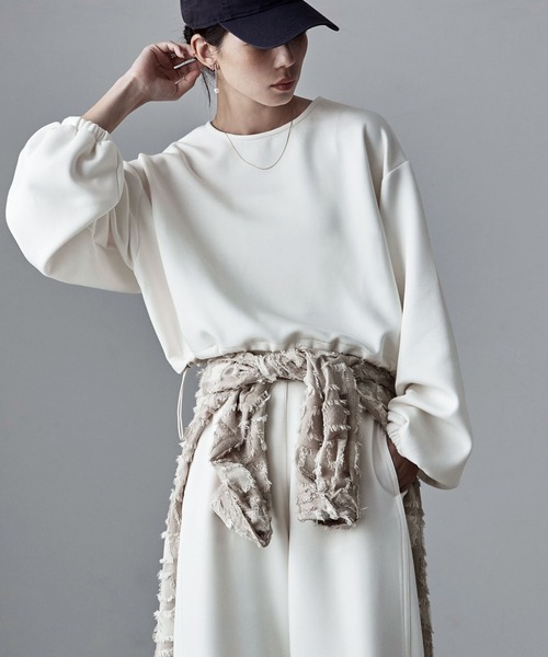 手抜きに見えずラクできる、品のよさで選んだスポーティなプルオーバー。ダンボールニットの風合いが一見スウェットのようでリラックスした見た目ですが、滑らかな重みの落ち感が大人っぽさを保ち、体をキレイに見せてくれる。ストレッチ性にも優れているダンボールニットは、程よい厚みで柔らかく、とろみを感じる素材感がゆったりシルエットでもボリュームを調整してくれます。ハイウエストボトムとの相性がいいクロップト丈の裾にはドローストリングをつけ、絞って着用すればウエストマークにも。そで丈を少し長めに設定しているので、ボリュームが出て1枚でもシャレたシルエットを演出できます。et0290007180(ダンボールニットカーブパンツ)とセットアップが可能。都会的なミニマルな装いで、心地よさを重視しつつキレイめに仕上がってくれます。etoll.「For me.」気ままに自由な服選びで、私だけのファッションを楽しむ女性へ捧げるセレクトショップ。系統に捉われず、気分を高めたい日や特別な日、 いつでも私の好きを身につけましょう。自分自身のためにお洒落をしたい気持ちを大切に、豊かな個性とトレンドを取り入れたアイテムで、少しだけお手本になるようなスタイリングを提案します。【備考】・伸縮性あり・アイボリーは透け感あり・裏地なし・手洗い可・et0290007180(ダンボールニットカーブパンツ)とセットアップ可能※パンツは別売りです。【もっとお買い物を楽しんで頂く為に】▼商品のお気に入り登録お気に入りアイテムの値下げ・再入荷・在庫1点などの通知を受け取ることができます。▼ブランドのお気に入り登録新作アイテム入荷や人気商品の再入荷、タイムセールやクーポンなど、いち早く「bflat」のお得な情報を受け取ることができます。
