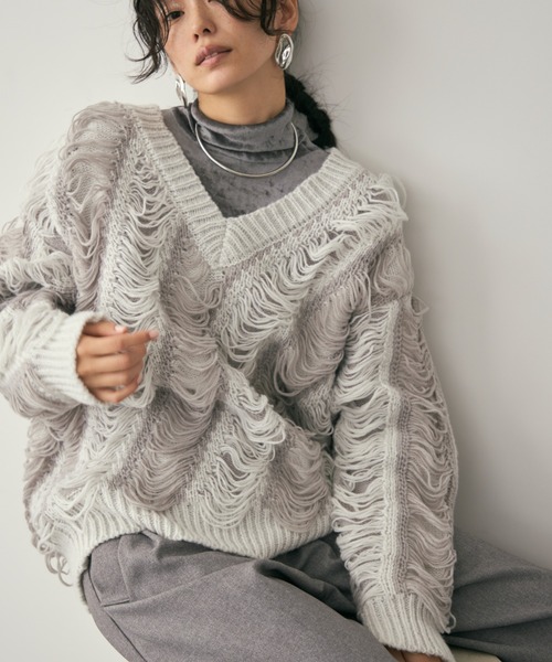 DFFUR. 2024 Autumn&Winter Collection ニュアンスループが大人のボリューム ■Detai 斜め方向に緩くループ状に編み立てた、ボリュームニットです。 太番手の糸で贅沢なボリューム感を出しつつも、 深めのVネックにする事で抜け感を演出しました。 ■Styling Point 中にタートルを合わせて着ていただくコーデもオススメ。 タイトボトムともワイドパンツとも相性の良い冬らしい1枚。 ---------------------------------- 裏地: なし 光沢感: なし 透け感: なし 伸縮性: あり 生地の厚さ: 中肉 ポケット:なし ---------------------------------- ■ブランド情報 DFFUR. (ディフル) 忙しい日々の中でも心地よく自由なライフスタイルを 何気ない特別な日々を私らしく繕う @dffur.officialインスタグラムのオフィシャルアカウントにて 発売前のアイテムや人気アイテムの入荷情報など様々な情報を発信中!商 品に関するご質問はインスタグラムのdmにお気軽にご連絡ください! ■お気に入り登録について 気になるアイテムの『♡』マークをクリックしてください。 完売カラーの再入荷通知やラスト1点の通知time saleの通知も受け取ることができます。 ぜひご登録ください◎ ■ブランドのお気に入り登録 「DFFUR.」と検索していただき『♡』マークをクリックしてください。 新商品や再入荷など、ブランドの情報をいち早くお届けします。 ぜひご登録ください◎ ■返品・キャンセルについて ・着用・洗濯後の返品・ご交換は致しかねます。 ・商品到着後、着用前に商品を確認して頂きますようお願い致します。
