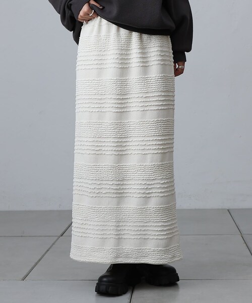【ぽこぽこデザインが可愛いシャーリングナロースカート】存在感のある立体的なシャーリングナロースカートが登場シャーリングデザインが特徴でコーディネートのアクセントに◎ウエストも総ゴムなので着脱もスムーズでリラックスした履き心地なのも嬉しいポイントバックスリット入りで足さばきも抜群です【商品ポイント】・ぽこぽことしたデザインがアクセントに・ウエスト部分が総ゴムで着脱もスムーズ・バックスリット入りで足さばき抜群----------------------------------------------------■商品特徴洗濯方法:手洗い可裏地:あり透け感:なし伸縮性:あり光沢感:なし生地の厚さ:普通----------------------------------------------------■素材表地: ポリエステル100%裏地: ポリエステル100%----------------------------------------------------※着用、お取り扱いの際は、商品についている品質表示とアテンションタグを必ずご確認下さい。※商品タグに記載されている商品名がWEBでの表記名と異なる場合があります。※画像の商品はサンプルです。実際の商品と仕様、加工、サイズが若干異なる場合がございます。 ※照明の関係により、実際よりもやや明るく見える場合がございます。またパソコンなどの環境により、若干製品と画像のカラーが異なる場合もございます。予めご了承くださいませ。【お気に入り登録】してお得な情報をCHECK!!・「商品のお気に入り登録」で再入荷通知や、ラストの通知、セール通知も受け取ることができます。・「ブランドのお気に入り登録」で新商品や再入荷など、お得な情報を受け取ることができます。
