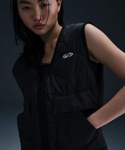 ゆったりとしたフィット感で撥水性のあるベスト。キルト加工のテクスチャーから大きなカーゴポケットまで、ディテールにこだわっています。