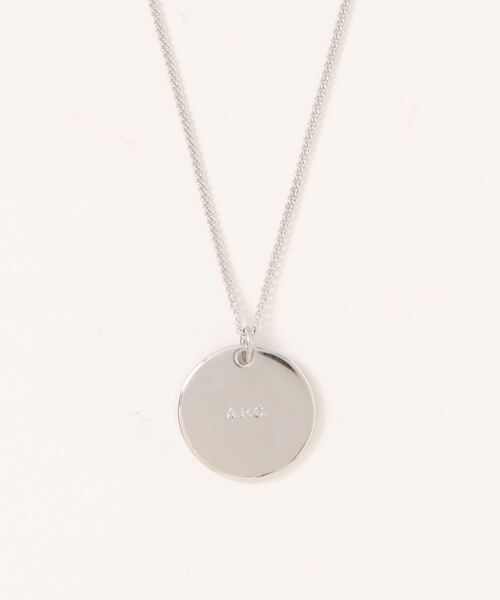 A.P.C.ロゴ刻印入り小さなメダリヨン付細いシルバーチェーンのネックレス.