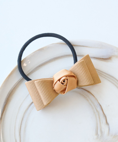 親子で使えるエレガントなリボンヘアゴム。【デザイン・シルエット】・中央にバラモチーフを飾ったリボンヘアゴム。・リボンは二重にして立体感をプラス。【カラー】・ブラック、ベージュの取り入れやすい2色展開。【スタイリングポイント】・キッズのセレモニー対応にも活躍。・大人はエレガントなハーフアップにぴったり。※撮影時の光、お使いのモニター環境によって色の見え方が違う場合がございます。
