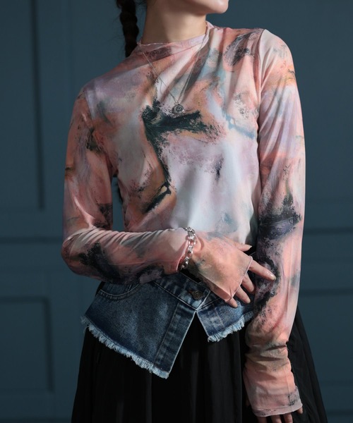 【アイテム】 大理石のようなハイクラス感が漂い、モードスタイルに仕上げる大人な一枚。 少し立ち上がりのあるネックラインで重ね着スタイルにチラ見えさせても印象的に。シアーなチュール素材がグッと今っぽさと完成度の高い旬な着こなしが目指せます。袖口には親指を挿し込めるサムホール仕様で、手の甲までカバーしながら、袖のずり上がりを防ぎます。 ほんのり透けるチュールはヘルシーな大人の肌見せにはうってつけ。重ね着の挿しアイテムとしても存在感を発揮し、コーデに投入するだけで大人っぽさが増す万能さ。 【シーン】 お出かけ、旅行、ランチ、女子会、オフィス、お呼ばれに活躍します。 【体型カバー】 すっきりとしたシルエットで二の腕、ウエストの体型カバーができます。 【Sサイズスタッフ着用コメント/40代150cm】 着丈は骨盤が隠れるくらいです。袖は伸ばすと手が隠れますがクシュクシュさせて手の甲くらいで着用出来ます。プチハイネックで首元も窮屈感なかったです。脇グリも身幅も程よい余裕があり楽に着用出来ました。伸縮性のある柔らかいチュール生地で肌触り良く着心地良かったです。透け感があるのでインナーは必要です。 ※お使いのディスプレイにより色味が異なって見える場合がございます。ご了承の上お買い求め下さい。 ※他のキャンペーンにより、期間中に価格が変動する場合があります。 ☆『お気に入り登録』でお得な情報がいっぱい☆ ■「商品のお気に入り登録」で再入荷通知や、在庫残り僅かの通知、セール通知も受け取ることができます。 ■「ブランドのお気に入り登録」で新商品や再入荷など、お得な情報を受け取ることができます! 是非ご登録くださいね☆