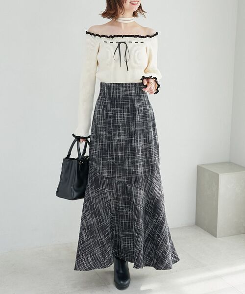シルエットがきれい!スタイルアップ間違いなしのロングスカート。 ■デザイン 柔らかい生地でマーメイドシルエットを綺麗に魅せてくれます。 薄手のツイード生地なので春まで着用いただけます。 パネル切り替えデザインが程よいアクセントに。縦ラインを美しく魅せてくれます。 ■サイズ感 後ろウエストがゴム仕様となっております。 脇ファスナーが長めなので、楽に着脱していただけます。 Sサイズの展開もあるので低身長さんや小柄な方も着丈を気にせずお好きなシルエットを選んでいただけます。 #低身長 #小柄 #Sサイズ ■スタイリング ニットからブラウスまでどんなアイテムとも相性抜群。 Tシャツなどあえてラフなアイテムでカジュアルダウンしても◎ 着回し力抜群でロングシーズン活躍する1枚です。 ・・・・・・・・・・・・・・・・・・・・・・ 透け感:なし 裏地:あり 伸縮性:あり(ウエスト背面) 光沢感:なし 生地の厚さ:[ベージュ・グレー・ブラック]普通 [アイボリー柄・ブラック柄]厚手 ・・・・・・・・・・・・・・・・・・・・・・ ■商品のお気に入り登録 再入荷通知やのこりわずか、お得なプライスダウンの情報も受け取ることができます。 ぜひご登録ください◎ ※サンプルでの撮影の為、製品と仕様が異なる場合がございます。 ※XSサイズはWEB限定サイズとなります。