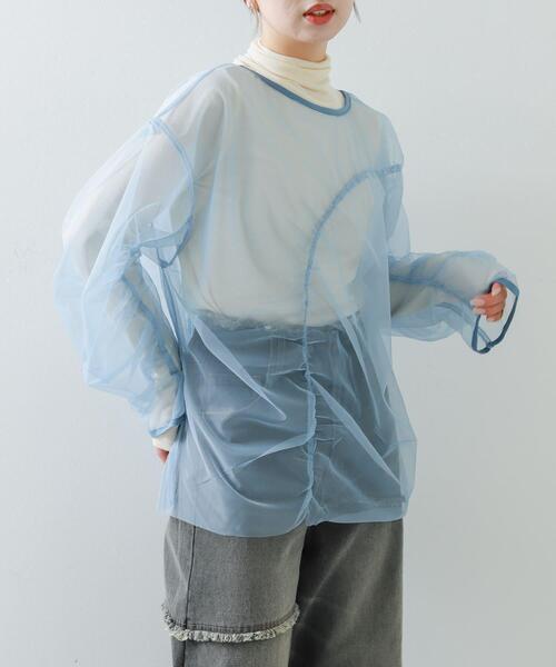レイヤードコーデにオススメな万能トップス 〇シャーリングデザインで立体的な印象 〇ニットやスウェットも組み合わせ出来るゆとりのあるサイズ 〇シーズンレスなチュール素材 styling シャーリングデザインが目を引くチュールトップスは秋冬はニット・スウェットとのレイヤード、春夏Tシャツやキャミソールとのコーデがオススメです!幅広い季節でコーデにポイントをいれてくれますよ〇 【2024 Autumn/Winter】【24AW】 ※この商品は、素材感と雰囲気を重視し、非常に柔らかい風合いの生地を使用しています。激しい運動や強い力がかかると、滑脱したり目寄れすることがありますのでご着用の際はご注意ください。 ※商品画像は、光の当たり具合やパソコンなどの閲覧環境により、実際の色味と異なって見える場合がございます。予めご了承ください。 ※商品の色味の目安は、商品単体の画像をご参照ください。 ▼お気に入り登録のおすすめ▼ お気に入り登録商品は、マイページにて現在の価格情報や在庫状況の確認が可能です。 お買い物リストの管理に是非ご利用下さい。 素材感 透け感 : あり 伸縮性 : ややあり 裏地 : なし 光沢 : なし ポケット : なし one