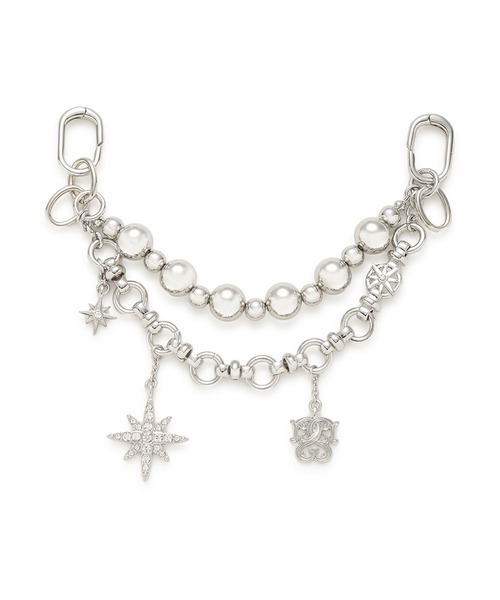 【バッグやスマートフォンをマルチチャームでデコラティブにアレンジ】【Design/Styling】存在感があって華やかなマルチチャームがお目見え。パフハンドルバッグ(SWGB245606)に組み合わせたり、スマホカバーに付けたり、アレンジ自在にお楽しみいただけるアイテムです。カラビナで簡単に装着いただけるのも魅力。シルバーとゴールド、ミックスの3色展開にてご用意しました。シルバーとゴールドは、メタルのボールチェーンを組み合わせたチャームです。艶感のあるメタルのボールチェーンがいつものお手持ちアイテムにモード感をプラス。キラキラなビジューをあしらったスターモチーフやSNIDELロゴモチーフが目を引くポイントに。スターモチーフにはビジューを使用し、キラキラとしています。ミックスは、パールビーズを使ったチャームです。スターモチーフにもパールビーズを使用し、上品な仕上がりです。※照明の関係により、実際よりも色味が違って見える場合があります。またパソコン・スマートフォンなどの環境により、若干製品と画像のカラーが異なる場合もございます。予めご了承ください。商品の色味は、商品単品画像をご参照下さい。 ※商品画像はサンプルのため、色味やサイズ等の仕様に変更がある場合がございますので、予めご了承ください。
