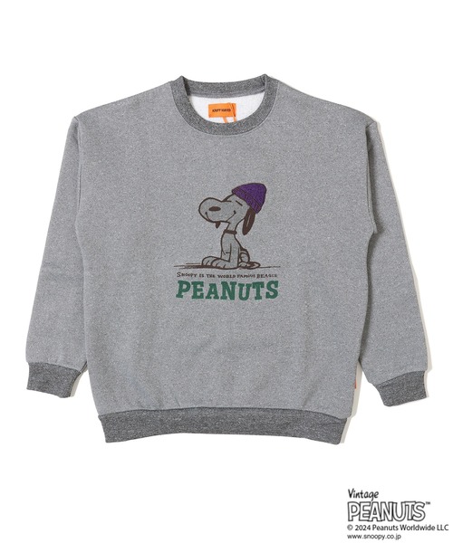 《KRIFF MAYER 秋冬アイテム「裏起毛クルー(スヌーピー)」》前後ろ両面かわいいスヌーピースウェット。のほほんとした表情のスヌーピーが愛らしいグラフィックです。もこもこのサガラ刺繍で表現したニット帽を被せてみました。背中には、チャーリーブラウンとルーシー、ウッドストックがプリントされており、カラフルなプリントカラーが目を惹く1枚です。柔らかい手触りと、裏はしっかりと起毛している暖かいスウェット素材を使用。繊維の特性上、乾きやすく冬場のお洗濯にも適しています。カジュアルなコーデに遊び心を加えてくれるアイテムです。-------------------------シルエット:ややワイド生地の厚さ:中肉透け感:なし伸縮性:あり裏地:なしケア方法:洗濯機洗い可-------------------------●『KRIFF MAYER』(クリフメイヤー)General Wear for FAMILY CAMP!!家族で着られるアメリカンカジュアルをテーマに誕生したクリフメイヤー。より家族が生き生きと暮らすには、シティネイチャーのボーダーをなくす必要があると感じています。その一つのキーとなるのが、「ファミリーキャンプ」だとクリフメイヤーは思うのです。お父さんが「今週末はキャンプに行こっか」と言えば、「釣りやってみたい!それと川遊びも!」「わたしは焚き火でマシュマロ焼く!」と子供たちが嬉しそうにしている、そんな光景が日常に溢れるようにしていきたい。クリフメイヤーに着替えたら、それは待ちに待った週末の合図。家族との特別な時間を当たり前に。クリフメイヤーの「General Wear for FAMILY CAMP!!」にはそんな想いが込められています。