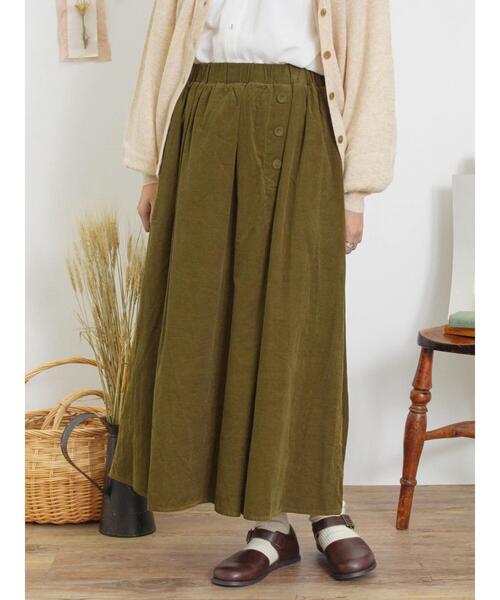 細コーデュロイが上品な印象を演出してくれるスカート。 サイドにボタンが施されたラップ風のタックデザインがポイント。 Aラインに広がるフレアなシルエットで女性らしい柔らかな雰囲気を演出してくれます。 カジュアルにもキレイめにもスタイリングが楽しめるアイテムです。 ※商品画像は、撮影環境やお客様のご利用のPC・スマートフォンのモニター環境などにより実物と色味に差異がある場合がございます。 【その他採寸】 F ウエスト:[ゴム仕様]34cm