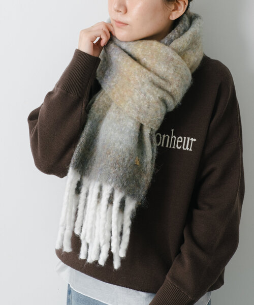 シンプルコーデのアクセントになるグラデーションマフラー【POINT】・シンプルコーデのアクセントになってくれる鮮やかなグラデーションカラーのマフラー。・フリンジはバイカラーになっていて、細部の色使いもおしゃれです◎・幅は狭めの作りですが、ウールが入っているので厚みがあり暖かいです。・巻き方で雰囲気を変えられるので、カジュアルなスタイリングからきれいめまで幅広く活躍します。【素材】ポリエステル74%,アクリル19%,毛6%,ポリウレタン1%【サイズ】幅:28㎝全長:【気になる商品は「お気に入り」登録を】ハートマークをクリックし、お好きなカラーを選んでお気に入りに登録すると入荷情報や残り1点の通知、完売カラーの再入荷、セール情報などを受け取ることができます。※撮影場所やお使いのモニター環境により若干お色味が異なる場合がございます。特にロケの撮影では明るく見える傾向にございます。詳細撮影画像で色味をお確かめくださいます様お願いいたします。※サンプルで撮影をしております。若干の仕様が変更になる場合がございますので予めご了承の上ご注文くださいますようお願いいたします。※サンプルでの採寸のためあくまで目安となります。予めご了承ください。