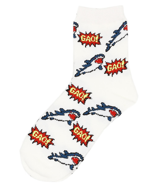 全面に遊び心あるジョーズ柄を落とし込んだソックス。柔らかく脚のラインにフィットし、ストレスなく着用して頂けます。今季はミニボトムにスニーカーなどの着こなしもオススメ。また、お値段も手頃でご自身用は勿論、プレゼントにもオススメです。 WEGOの特集ページはコチラ