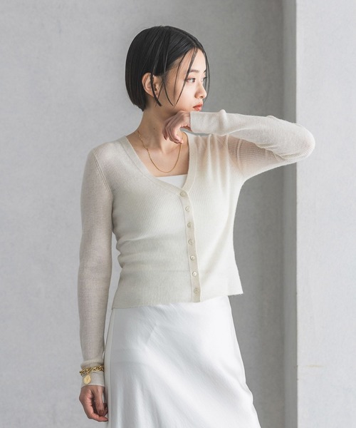 ーーー シアーのアルパカウール混素材を使用したコンパクトカーディガン ーーー 【デザインと特徴】 スッキリしたリブ編地で、素材の良さをより楽しんでいただける、 大人なコンパクトカーディガンです。 使いやすいVネックデザインで、シンプルかつ上品に着ていただけます。 カーディガンですが、プルオーバーとしての着用もおすすめです。 アルパカ、羊毛を使用していますが、手洗い可能。 機能面でも魅力的なアイテムです。 同素材を使用した、クルーネックニットもご用意しております。 <a >14Gシアーウールプルオーバー</a> 【素材特徴】 とても細く、コシのあるアルパカウール混素材で、シアーリブ編地にしました。 透け感はありますが、ウール高混率なため暖かさのあるインナーです。 ウール高混率ですが、手洗いできるのが特徴です。 【スタイリング】 コンパクトなディテールなので、ボリュームスカートや ワイドパンツ合わせがおすすめです。 【洗濯可否】 手洗いでのお手入れが可能です。 --------------------------------------------------------- 《インフォメーション》 ◆商品のお気に入り登録 ♡をクリックで気になるアイテムをお気に入り登録していただくと、 以下の通知を受け取ることができます。 ・入荷・再入荷・ラスト一点・セール対象時◆ブランドのお気に入り登録 新商品や再入荷、セール、クーポン配布などのお得な情報を受け取ることができますので、是非ご登録ください♪ 公式Instagram >>> 【@apartbylowrys 】 おすすめアイテムや新作情報、" ショップニュース "を更新中! ぜひフォローしてみてくださいね^^
