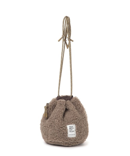 秋冬らしいボア素材バッグーーー【素材】表地:ポリエステル裏地:ポリエステル【デザイン】コロンとしたフォルムが可愛い巾着バッグ。サイドにファスナーがついているので荷物の出し入れも簡単です。内ポケットも2つ付いて入れ鍵や小物も仕分けもしやすい仕様に。持ち手の紐は簡単に長さ調整ができ、長くすれば肩掛けもできます。キャッチ―なロゴ好きで、カジュアルに持てるアイテムです。ーーー