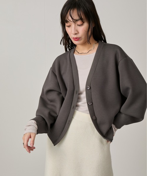 UVケア・イージーケア・ウォッシャブルの多機能カーディガン【デザイン・シルエット】 さらっと軽い着心地が魅力のダンボールニットを使用したカーディガン。 ボリュームのある袖が女性らしいシルエットを表現しています。 スタイリングのバランスを取りやすいショート丈で、アウターの代わりにさらりと羽織りやすい1枚。 一日の気温の変化に合わせて持ち運びに便利なアイテムです。 【コーディネート】 ショート丈なので、ボリューム感もあるボトムスとも合わせやすく、綺麗めなスタイルからカジュアルなスタイルまで幅広いスタイリングで着用できます。 寒い時期にはインナーにタートルネックを合わせ、カラーレイヤードのスタイリングもおすすめ。 【素材】 UVケア、ウォッシャブル可能なイージーケア素材です。 しっかりと厚みがありつつ、なめらかな柔らかさを追求したダンボールニット素材です。 中空の二重織素材で、保温性に優れておりとても暖かい着心地です。 脱ぎ着が出来、幅広いシーズンに着用頂けます。 ----------------------------- 裏地:なし 光沢感:なし 透け感:あり 伸縮性:あり 生地の厚さ:厚め ----------------------------- 【着用サイズ】 モデル H164 B81 W61 H90 着用サイズ FREE UVケア/ウオッシャブル/イージーケア/カーデ/重ね着 ※実際の商品はお客様のお使いの端末や閲覧環境により、写真と実物の色味や質感が多少異なって見える場合がございます。予めご了承ください。 ※伸縮性に富んだ素材のため、多少のサイズ誤差が生じる場合もございます。