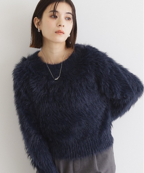 ■ポイント/詳細クリアなラメ糸を使用した毛足の長いフェザーヤーンが、程よく華やかさをプラスしてくれる1枚!レトロでカジュアル感のあるニットに仕上げゆったりした身頃とボリュームスリーブがトレンド感たっぷりなデザインです。浅Vネックとクルーネックと2つの着こなしが楽しめる前後2way仕様も嬉しいポイントです!■素材/機能性柔らかな毛足の長いフェザーヤーンです。ナイロンとポリエステルの混紡糸で手洗い可能です。■おすすめポイント着るだけでトレンド感のあるフェザーニットはデニムでカジュアルにも、フレアスカートで綺麗めにも着こなし力のあるニットです。オーバーサイズのニットやカーデ、シャツにもよく合います。*****************************【骨格タイプ別おすすめスタイリング】■ストレートタイプ体のラインを強調するフィットしたスタイルが似合います。細身のパンツやスカートでスッキリとしたシルエットでまとめて!ウエストタックインや1部前インで着こなしするとボディラインがきれいに見えて効果的です。■ウェーブタイプ柔らかい素材や雰囲気のスタイルが似合います。フレアスカートやAラインのスカートを選び、Xラインシルエットを意識すると素敵です。■ナチュラルタイプリラックス感があり、作り込みすぎないスタイルが似合います。ウエストアウトで着こなし、ボトムスにはワイドパンツやロングスカートゆるっとしたスタイルも素敵です。ストレートなパンツやアンクルパンツ合わせでスタイリッシュな着こなしもおすすめです。*****************************※照明の関係により、実際よりも色味が違って見える場合があります。また、パソコン・スマートフォンなどの環境により、若干製品と画像のカラーが異なる場合もございます。*****************************【お買い物をよりお楽しみいただくために♪】\\気になるアイテムはお気に入り登録がおすすめ!//オンラインサイトの商品ページモデル情報:身長163cm B80 W58 H87 着用サイズ:99(FREE)店舗へのお問い合わせ商品番号:040-19031●製品寸法:99(FREE):着丈48cm B96cm 袖丈46cm 肩幅44cm備考: