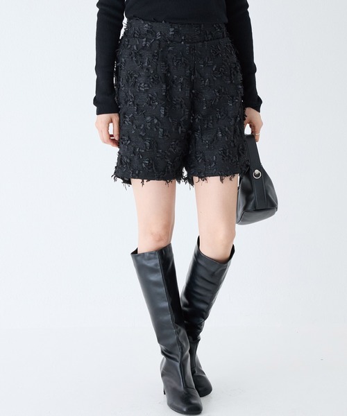 表面感のあるフリンジツイード素材のショートパンツ。 脚の筒周りをややゆったりめに作っているので、気になる部分をカバーし美脚見せしてくれます。 同素材のベスト(品番:5347015)と合わせてセットアップとしての着用はもちろん、タートルやブラウスをINしたボトムを主役にしたスタイリングも素敵。 バックウエストゴムで着心地も快適です。 *着回ししやすいモノトーン *豊富なマルチサイズ展開/大きいサイズ対応(M/L/LL) *トレンドアイテム *自宅で洗濯可(手洗い・ドライ) <INCEDE> ■商品注意事項■ ※商品画像は、光の当たり具合やパソコンなどの閲覧環境により、実際の色味と異なって見える場合がございます。予めご了承ください。 ※末永く愛用頂く為に、アテンションタグ・洗濯ネームを必ずご確認の上、着用又はお取り扱い下さい。 ※生産時期により色味が多少異なる場合がございます。予めご了承ください。