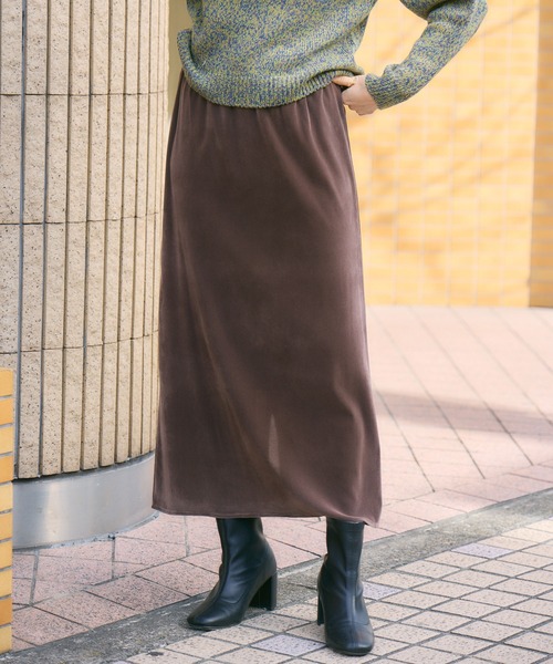 艶やかなベロア素材が上品さを演出してくれるナロースカート[素材]・柔らかく肌当たりの良い微光沢感のあるベロアジャージ。[デザイン]・歩くたびベロアに織り込まれた細かなラメのきらめきが、エレガントなロングスカート。・落ち感と縦ラインでスマート感も演出します。・ウエストぐるりゴム仕様でストレスフリーな履き心地。リボンを通しているので、ウエスト調節もできます◎・選べるM、Lの2サイズ展開で自分に合ったサイズでお召しいただけます。・裏地付き、ポケットなし。[スタイリング]・編み感のあるニットを合わせてシーズンライクなフェミニンなコーデに。・シンプルにロゴTなどと合わせた大人カジュアルなスタイリングも◎※発送上の状態によって商品に若干のたたみシワがある場合がございます。予めご了承くださいませ。着用前に洗濯タグ・品質表示に従ってアイロンまたは、スチームアイロンをかけていただく事をおすすめします。※照明や光の当たり具合で色味が違って見える場合があります。<24AW Collection 24Autumn&Winter>---------------------------------------------------【Pillini】「Pillini/ピリーニ」フィンランド語で「私の笛」口笛を吹きながら笑顔で過ごせる…そんな何気ない豊かな毎日を彩るトレンド感のあるきれいめカジュアルウェアーを手に入りやすいプレミアムプライスで提案します。---------------------------------------------------【お買い物をよりお楽しみいただくために】・商品のお気に入り登録をおすすめします!♡マーククリックで登録できます。完売カラーの再入荷や、ラスト1点になったときの通知、セールの際に通知などお得な情報を受けることができます。・ブランドのお気に入り登録もご一緒にお願いいたします!新商品や再入荷、などいち早くブランドの最新情報をお届けします。