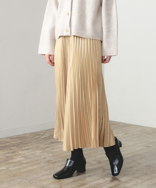 動くたびに表情豊かに揺れる■デザイン絶妙な光沢感が上品にトレンドを取り入れられるロングスカート。ウエスト部分から細く、裾に向かって幅が広くなる印象的な変形プリーツデザインは、コーディネートを繊細かつ華やかにすっきりと整えてくれます。長めの丈感と、動くたびに揺れるシルエットがエレガントな雰囲気を演出。■コーディネート様々なトップスに合わせやすく、シンプルコーデもしっかりお洒落に見せる優秀アイテムです。春・秋・冬とロングシーズンコーデに取り入れていただけます。■サイズきれいめな印象ながら、イージーに着られるウエストゴム仕様も嬉しいポイントです。■素材裏地付きで、シワになりにくく、程よい落ち感と光沢感が魅力。オンオフ問わず着用できる優秀アイテムです!■ケア方法洗濯可(詳細は商品についている品質表示ラベルをご覧ください)**********************生地の厚さ:やや薄手透け感:なし伸縮性:なし光沢感:ややあり裏地:あり**********************※光の当たり具合やパソコンなどの閲覧環境によって実際の色味と異なって見える場合がございます。予めご了承ください。※商品の色味は商品単体で撮影した画像をご参照ください。