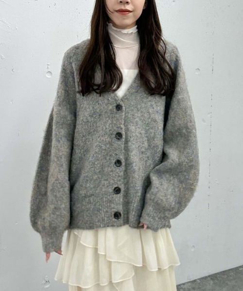 ■大人見えカーディガン■ 起毛感のある素材が温かみのあるカーディガン。 MIX素材が大人っぽく着こなせる一枚です。 顔回りがスッキリと見えるVネック。 開けてもきれいに着れるので、羽織りとしてもおすすめなデザイン。 ハイネックなど首の詰まったインナーを合わせるのもおすすめです。 ドロップショルダーでゆったりとしたサイズ感。 お尻が隠れる長めの着丈なので秋のアウター代わりとしてもぴったりです。 ミニボトムを合わせてミニワンピ風の着こなしもおすすめです。 ーーーーーーーーーーーーーーー 透け感:なし 裏地:なし 伸縮性:ややあり 光沢感:なし 生地厚さ:厚い 洗濯方法:クリーニング推奨 ※詳しいお手入れ方法は商品についているタグをご覧ください ーーーーーーーーーーーーーーー … information … 欲しいitemをお気に入り登録(♡マークをclick) ・お買いのがし対策…完売itemの再入荷やラスト1点の情報をお知らせ ・欲しいitemをお得にget…pricedownになったらいち早くお知らせ ・スムーズ検索…ZOZOのお気に入りアイテムページで簡単checkできるから、再検索不要♪
