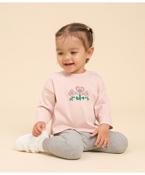 手描きライクなフラワープリントが愛らしい長袖Tシャツです。環境にやさしいオーガニックコットン、第二の肌と呼ばれるほど心地よい肌触りの1x1リブ編み素材を使用し、快適な着用感を実現しています。背面にはスナップボタンを施しお着替えも簡単に。シーズンを通じてパンツからスカートまで、幅広いコーディネイトを楽しめる一枚です。※プリントは永久的なものではなく、もみや摩擦でひび割れたり、繰り返しの洗濯によるプリントの変色や、脱落が生じる場合があります。中性洗剤などで単独洗いをしてください。