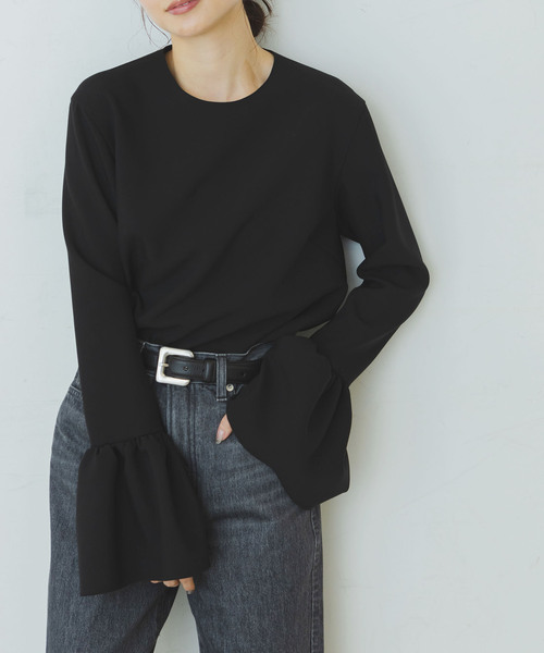 カットソーのようなストレスフリーな着心地でありながら、キレイめに着用できる気映えトップス。 その名の通り袖口にデザインポイントを置き、その他身頃などは敢えてシンプルに。 身頃と袖が細身、裾はストレートになっているので、ボトムにインしなくてもキレイに着られるのが嬉しい。 キレイめシーンからオフシーンまで活躍してくれるフェミニンブラウスです◎。 ********************** 透け感:なし 裏地:なし 伸縮性:なし 光沢感:なし 生地の厚さ:普通 ********************** ※取り扱いについては、商品についている品質表示でご確認ください。 ※こちらの商品は、NOBLEでの取り扱いになります。 直接店舗へお問い合わせの際はNOBLE店舗へお願い致します。 ※照明の関係により、実際よりも色味が違って見える場合があります。 またパソコン・スマートフォンなどの環境により、若干製品と画像のカラーが異なる場合もございます。 ※商品の色味は、商品アップ画像をご参照ください。 ブラック着用スタッフ身長:160cm 着用サイズ:フリー ホワイトA着用スタッフ身長:155cm 着用サイズ:フリー モデルサイズ:身長:167cm 着用サイズ:フリー 本体:手洗い可能
