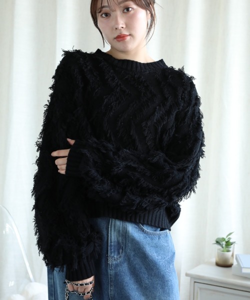 1. デザイン: このニットは、全体にフリンジが施されたジャガード編みが特徴的です。フリンジによって立体感が生まれ、個性的で存在感のあるデザインに仕上がっています。 2. 素材感: ジャガード編みの技術を用いた素材は、厚みがあり、秋冬の季節にぴったりの暖かさを提供します。フリンジ部分が柔らかく、肌触りも良いです。 3. カラー展開: ブラック、ブルー、グレー、ベージュの4色で、どの色も落ち着いたトーンで、様々なスタイルに合わせやすいカラーです。 4. シルエット: ゆったりとしたオーバーサイズのシルエットで、リラックスした着心地を提供します。裾や袖口にはリブが施されており、全体のバランスを引き締めています。 5. スタイリング: このニットは、デニムやスラックス、スカートなどと合わせてカジュアルなスタイルにも、ちょっとしたお出かけにも適しています。インパクトのあるデザインなので、シンプルなボトムスと組み合わせるとバランスの良いコーディネートが完成します。 このフリンジジャガードニットは、秋冬のワードローブに個性を加える一枚で、温かさとスタイルの両方を兼ね備えたアイテムです。