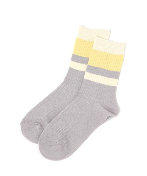 ラインが可愛いリブソックス ーーー 【素材】 アクリル ポリエステル 再生繊維(セルロース) 麻 綿 ポリウレタン 【デザイン】 カラー違いでほしくなるような配色が可愛いラインソックス。 カジュアルにもトラッドにもなる秋冬にピッタリなデザインです。 ーーー 程よいスポーティー感もありスニーカーとの相性も◎