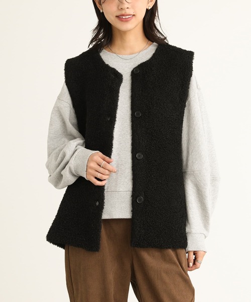 ふわふわとした肌触りで、あたたかい印象を与えてくれるプードルニット生地。レイヤードに使いやすい程よい厚みの生地感です。いつものコーデに羽織るだけで、ポイントになるジレベスト。こなれた雰囲気たっぷりに仕上げてくれます。様々なアイテムとも合わせやすく着こなしの幅が広がります♪※毛羽抜けがございますが、生地の特性となります為、ご了承の上ご購入いただきますようお願いいたします。※生地の裏側は、ネップが入っております。生地の特性となりますため、 あらかじめご了承の上ご購入いただきますようお願いいたします。※ニット製品につきまして。ニット素材の持つ特性として編み上げる行程やプレス仕上げによって多少サイズや風合いの個体差が生じる場合 がございます。着用した時と実寸の長さが変わる可能性がございます。また、着用の際ピリングが避けられず、完全に防止することはできません。毛玉取り器等で丁寧に取り除いてく ださい。ご了承の上、ご購入いただきますようお願いいたします。