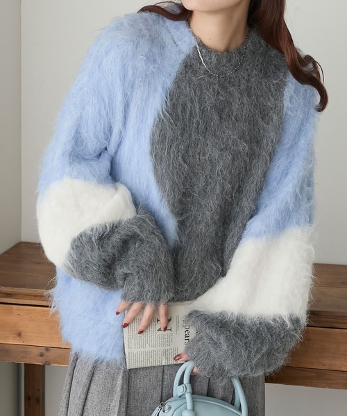 ふわふわとしたシャギーにニュアンスのある配色柄が目を引く 秋冬シーズンを華やかに彩るモヘアライクニット ・彩り豊かなマーブル柄風ボリュームニット ・3色のカラーをのせたウェーブのようなアート風デザインがお洒落 ・毛足の長いふわふわとした柔らかいシャギー素材 ・ふんわりと広がるボリュームスリーブが女性らしい印象に ・身体のラインを拾わないゆったりとしたオーバーシルエット ----------- 透け感…なし 伸縮性…あり 光沢感…なし 生地の厚さ…厚め 洗濯方法…家庭での洗濯不可 ---------- ■取り扱い方法 この製品は、素材・編地の特性上、1着、1着、サイズのばらつき、風合い、色合い等が微妙に違います。あらかじめご了承ください。 ご着用時の激しい運動、摩擦や引っ掛かりやすいアクセサリーのご使用はお避け下さい。 ご着用時には、爪、指輪、時計、ヘアピンなどでひっかけないようにして下さい。 保管の際には、ハンガーなどにかけ吊るして置くと型崩れしやすいので、必ず畳んで平らな状態で保管してください。 この製品は素材の特性上、多少毛羽が抜けることがあります。 他の衣類に付着した毛羽はブラッシング等でお取りください。 着用の際はできるだけ同色系の衣類との組み合わせをおすすめします。 長時間水に漬けておいたり、濡れたまま放置しないでください。 漬け置き洗いはお避け下さい。 ※取り扱いについては、商品についている品質表示でご確認ください。 ※撮影画像は、光の当たり具合で色味が違って見える場合がございます。 また、ご覧になっているデバイスやモニター環境によって、実際の色味と多少異なって見える場合がございますので予めご了承をお願い致します。 ■スタッフ着用レビュー 153cm/FREEサイズ着用 起毛感のあるフワフワとした素材が着心地のいいビッグシルエットニットです。 遊び心のある鮮やかなマルチカラーが着映えし旅行などのお出かけシーンにぴったりです◎ ≪お買い物をお楽しみいただくために≫ ▼商品のお気に入り登録 完売カラーの再入荷通知や、ラスト1点の通知、セールの通知も受け取ることができます。 ▼ブランドのお気に入り登録 新商品や再入荷等、いち早くブランドのお得な情報を受け取ることができます。