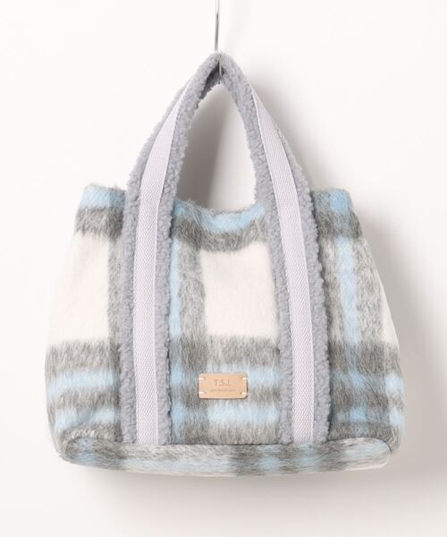 【T.S.L/ ティーエスエル】 シーズンムード高まる起毛チェックのトートバッグ。特徴的なチェック生地に、ボアとテープを合わせたライン配色のハンドルがアクセントになっています。スクエア型で、底マチがしっかりしていて安定感もばっちり、機能性も兼ね備えたバッグです。 ※生産過程に生じるキズが多少ある場合がございます。また素材の特性上、若干の色ムラ、擦れが見られる場合がございますが、こちらは素材の特性となります。予めご了承下さい。 ※サイズ換算(表記)はあくまで目安となります。