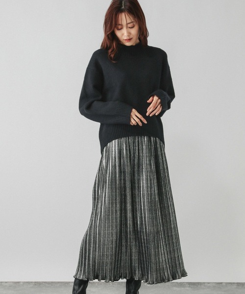 もっちりと弾んでふんわりソフトな着心地、Hug meシリーズ・素材思わずハグしたくなるような、モチフワな質感の素材・機能マシンウォッシャブル・デザイン膨らみのあるニットとプリーツスカートの着映えするセットアップ。ニットはすっきり見えるハイネック、スカートは甘すぎないランダムプリーツで、それぞれ大人の方も着やすいデザインです。ニットのふんわり感とスカートの微光沢感のコントラストがポイント。スカートはウエストゴムで楽ちん。セットで簡単に上品コーデが完成し、単品それぞれでも着回せるので、コスパ・タイパともに抜群なアイテムです。ブラック系9はスカート、ベージュ系1はニットがラメカラーになっております。----------------------------- 裏地: なし 透け感: 透けない(ベージュ系1で計測しています) 伸縮性: あり(ベージュ系1で計測しています) 生地感・厚さ: 普通(ベージュ系1で計測しています)----------------------------- ・注意事項ブラック×ブラックラメスカート09は特殊なプリント加工をしています。プリントは永久的なものでなく、揉まれたり、擦られたりすると脱落しやすくなります。また、水洗いやクリーニングを繰り返すことにより多少色合い等が薄くなります。強い摩擦や折り目が入ると、プリント部分が剥離する事があります。また、汗や飲料等が付着すると変色すえう場合がございます。【お買い物が便利になる機能がたくさん!】 ▼商品のお気に入り登録▼ 完売アイテムの再入荷通知、ラスト1点、またクーポンやお値下げ通知をお知らせします。 ▼ブランドのお気に入り登録▼ 新商品や再入荷のお知らせ等、いち早くブランドのお得な情報を受け取ることができます。 ぜひご登録ください。