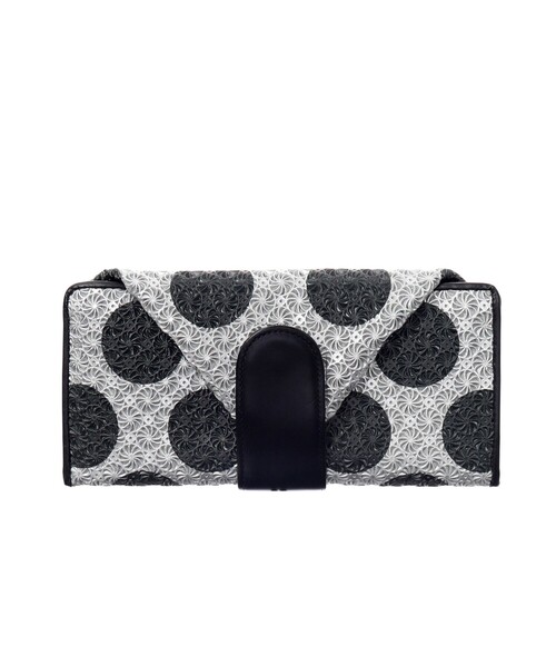 -LIMITED EDITION- GIRASOLE20周年ホリデーシーズン限定のデザイン 【デザイン】 POINT(ポワン)・・・点 ホリデーシーズンの喜びを分かち合う、シャンパングラスの中の気まぐれな泡の光。 その瞬間を捉え、グラフィカルに表現しました。 スマホや通帳、鍵などちょっとした収納も可能な「長財布」 スナップボタンを外すとお財布全体が箱型の作りになっており、大きな小銭入れのように開きます。 スナップボタンは2つ付いているので、容量に合わせて調節が可能です。 小銭は開いたときに底になる大きな面で見れるので、いくら入っているかわかりやすく、取り出しやすくなっています。 そのため、小銭が出しにくく溜まってしまうということがなく、軽く、すっきりとした状態を維持でき、型崩れも防ぐことができます。 小銭の出し入れと同じ向きのまま、カード、お札が取り出せるので、無駄のないスムーズな動きで出し入れが可能です。 Dカン付なので、別売りのロングチェーンやレザーストラップを付けることで、ショルダーバッグのようにお使いいただけます。 ※ショルダーベルトは付属しておりません。 カード入れ:8箇所 / お札入れ:3箇所 / 小銭入れ:1箇所 / スナップボタン調節:2段階 【素材】 牛革 メタリック塗装を施した牛革に型押し型抜きをして、柄を出しています。 通常のGIRASOLEの革にプリントを施しています。 ※型抜きを施した革にプリントをしているため、プリントの出方には個体差があります。 あらかじめご了承ください。 【お手入れ方法】 軽くブラッシングして埃を取る。 濡れた場合は、乾いた布で水気を押さえ取りし、風通しの良い場所で陰干しする。 防水スプレーをお使いの際は、目立たないところで試してからご使用ください。 ※照明の関係により、実際よりも色味が違って見える場合があります。また、パソコン・スマートフォンなどの環境により、若干製品と画像のカラーが異なる場合もございます。 モデル情報:身長166cm B72 W59 H82 店舗へのお問い合わせ商品番号:709-21663 ●製品寸法: 00(FREE):H10cm W20.5cm D2cm 付属箱H11cm 付属箱W22cm 付属箱D4cm 備考:重量:約135g(サンプル重量)