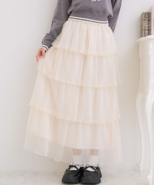 <ボリューム感のあるティアードデザインで、甘く可愛いスタイリングに♪>▼デザイン大人気のチュールスカート!今回は、4段フリルでボリューム感UP!ウエストは変わらず360°ゴムでご用意しております。プリーツデザインで上品な印象に仕上げた1枚です。▼コーディネートボリューム感のあるスカートなので、シンプルにトレーナーやニット合わせるだけでガーリーコーデに。デートコーデにもおすすめなので、クリスマスデートでセレクトするのも可愛いです♪------------------------------生地感:薄手伸縮性:なし透け感:ある(チュール部分)裏地:ある------------------------------▼ブランド紹介ems excite (エムズエキサイト)“more fun more cute”今をもっと楽しくもっと可愛くいたい女の子に向けたgirly cuteなブランド#チュール #チュールスカート #マキシスカート #ガーリーアイテム #ティアードスカート▼注意事項※撮影環境やモニター環境によって実際の商品とお色味が多少異なってみえる場合がございます。品番:EA537531G005 / 品名:ティアードプリーツチュールSK