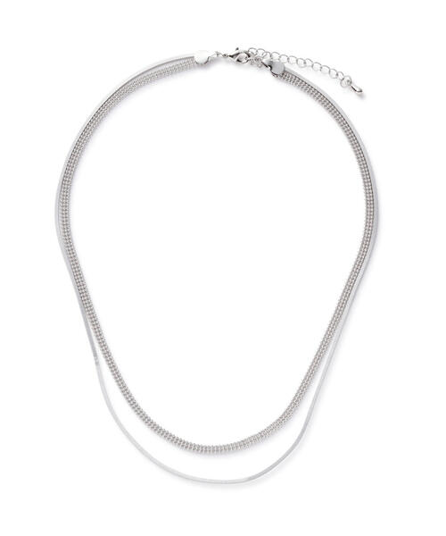 2種類の異なるチェーンをMIXしたダブルチェーンネックレス。レイヤードしたように見せてくれるスタイリッシュなデザインです。フェミニンからカジュアルな着こなしまでマッチするアクセサリーです。※モデルの着用画像の場合、光の当たり具合により、実際の色味と異なって見えることがございます。色味は、商品単体の画像をご参照ください。