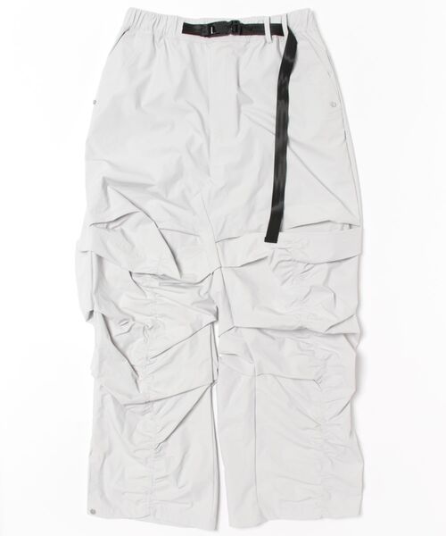 DankeSchon大胆なパッカリングデザインが主役のナイロンパンツ。パリッとしたナイロン素材をベースに、膝下にしわ寄せ(パッカリング)をほどこした程よいボリューム感がトレンドライクな仕上がりの一本です。ベルト付きのゆったりとしたオーバーサイズでユニセックスに着用いただけます。トップスにはカットソーやクルーネックスウェット、パーカーなどのストリートアイテムからシャツやニットなどのカジュアルアイテムとも好相性です。DankeSchon・・・DankeSchonとは、このブランドの核となるキーワードD digitaliyデジタル式A Architect創造者N neologism新表現K kittenish悪ふざけE engrossing心を奪うの頭文字を組み合わせたものにドイツ語のSchonを付け、ブランドの意図に賛同してくれる人達に感謝の意味を込め、「DankeSchon(ありがとうの意味)」としている。ファッションのテーマは「ニュースタンダード」。 時代に抗うのではなく、すり抜け受け流すことでブランドに見合う要素を抽出し、高品質な素材と、デジタライズなグラフィックを掛け合わせコレクションに落としていく。純粋なシルエット、ディテールへの徹底したこだわりと同時に、ユニークで新しい見解も積極的に取り入れる。そこから生み出された製品は、実用的でごく自然に日常に馴染むもの。