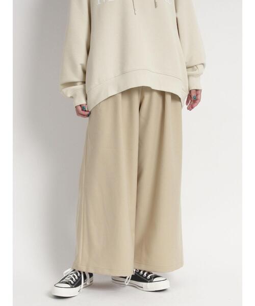 どんなスタイリングにもコーディネートしやすいシンプルなストレートワイドパンツ。 ウエストは後ろ部分のみゴム仕様でリラックス感もありまがらキレイ目に見えるようにタックデザインを施しています。 シリーズのジレジャケットとセットアップが楽しめます。 表面は程よい光沢感と素材の特徴としてストレッチ性があり着心地を重視しました。 滑らかな肌触りでシワになりにくく、毛玉になりにくい上質な素材を使用しています。 ※商品画像は、撮影環境やお客様のご利用のPC・スマートフォンのモニター環境などにより実物と色味に差異がある場合がございます。 【その他採寸】 M ウエスト:[後ゴム仕様]64cm L ウエスト:[後ゴム仕様]66cm