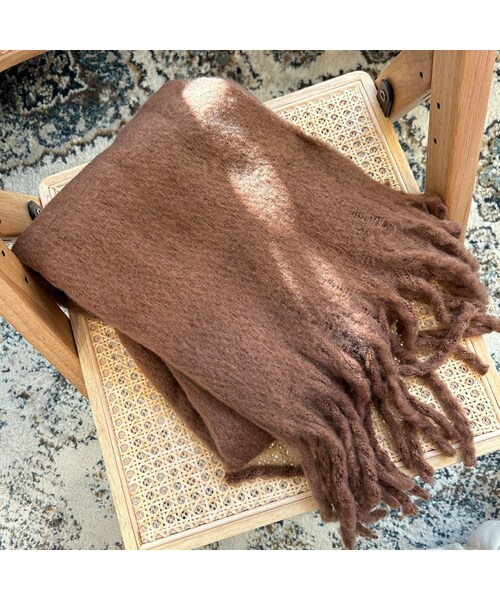 存在感のある太めフリンジでシンプルコーデのアクセントに。 主役にも脇役にもなる、万能な1枚です。 ■カラー ブラウン ◾️サイズ 全長:約194cm フリンジ部分:20cm 幅:約53cm ※多少の誤差は予めご了承ください。 ◾️素材 アクリル100%