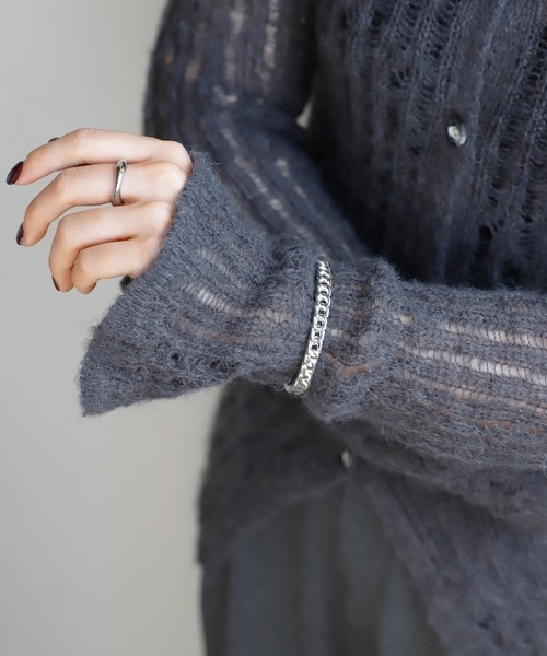 シャープな輝きを放つメタルが、洗練された手元に導くバングル。 程よいサイズ感がコーディネートに合わせやすく、デイリーに活躍します。 開閉式で簡単に着脱できる優秀アイテムです。 ※ATTENTION※ ■微細なキズや製造ムラはすべての商品に含まれます。
