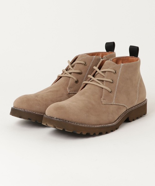 ■スエード調素材を使用したチャッカブーツ。 ■内側サイドファスナー付きで着脱が容易な設計 ■アウトソールにはアンティーク加工を施した軽量底を使用。 使い勝手のよいオシャレに決まるシンプルなショートブーツで コーディネートを気にせずに重宝します。